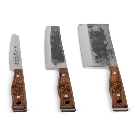 Tasak do siekania ze stalowym ostrzem o długości 17 cm i grubości 4 mm to rustykalny nóż do potężnego siekania i krojenia mięsa w kawałkach lub z kością. Cechą szczególną jest wysoka waga i ostrze o grubości 4 mm, z którym można przygotować stek T-bone do grillowania nad ogniskiem.