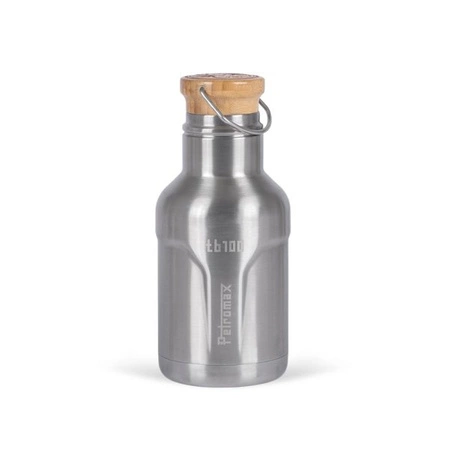 - Metalowa, termiczna butelka Petromax 1L z izolacją próżniową i podwójnymi ściankami zapewnia bardzo długi czas utrzymywania zimna (74 godziny), czas utrzymywania ciepła (18 godzin). Szeroki wlew. Stal szczotkowana, korek drewniany zakręcany z uszczelką.
