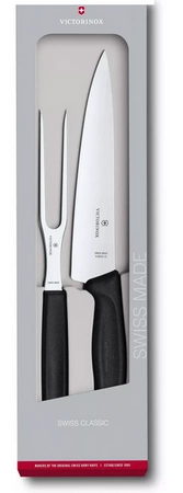 Delikatne mięso i drób zasługują na przygotowanie przy użyciu najwyższej jakości narzędzi – właśnie dlatego stworzyliśmy zestaw do porcjowania Swiss Classic. Ten dwuelementowy zestaw pomoże Ci bez trudu osiągnąć mistrzostwo w sztuce porcjowania. Plastruj, siekaj i krój – wszystko przy użyciu tego 19-centymetrowego noża. W utrzymaniu porządku na desce do krojenia pomoże Ci naturalny partner noża – 15-centymetrowy widelec. Oba narzędzia wyposażono w ergonomiczne rękojeści Swiss Classic, które gwarantują pewny chwyt.