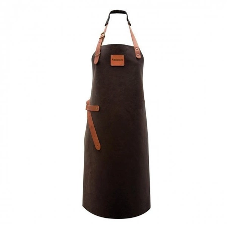 - Skórzany fartuch Grill Mastera MONOLITH - 100% naturalna skóra, wyjątkowo delikatna. Kolor: ciemnobrązowy (utah choco). Regulowane skórzane paski wokół szyi i bioder / Rozmiar: L lub XL . Waga około 600gr