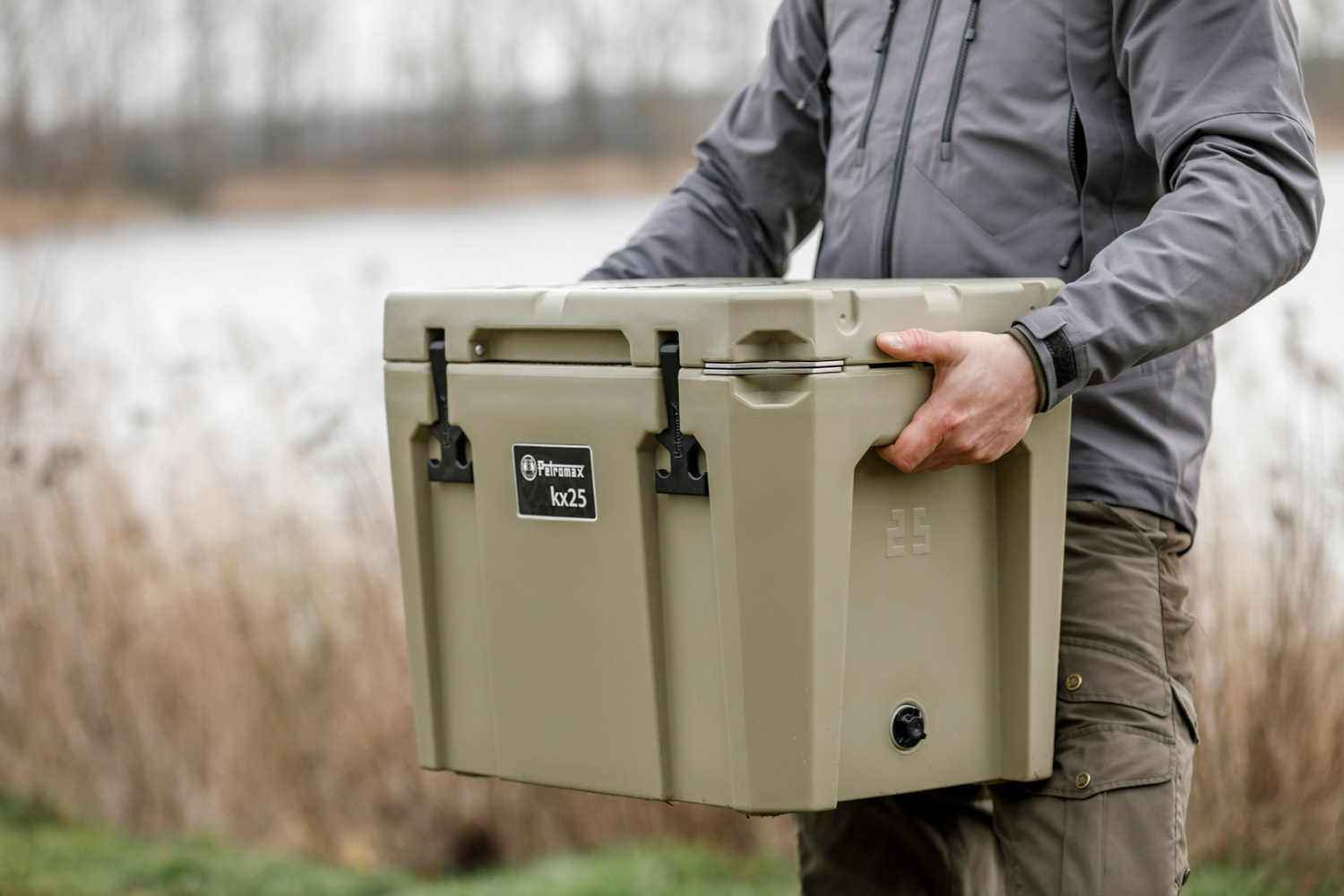 Dobrze przygotowany na dni bez prądu? Petromax Cool Box kx25 pozwala na zaopatrzenie się podczas kilkudniowej przygody. Ultrapasywny system chłodzenia działa tylko z dostępnym na rynku lodem, zimnymi okładami lub suchym lodem. Dwuścienne, izolowane puste przestrzenie kx25 utrzymują lód w chłodzie do 12 dni bez użycia kompresora lub absorbera. Bezkonkurencyjna korzyść: Wnętrze kx25 o pojemności 25 l jest zaprojektowane tak, aby można było przechowywać i transportować w pozycji pionowej 24 puszki 0,33 l lub 12 butelek 1 l. Również świeżo złowione ryby lub przyniesione prowianty mają swoje idealne miejsce w lodówce Petromax Cool Box.